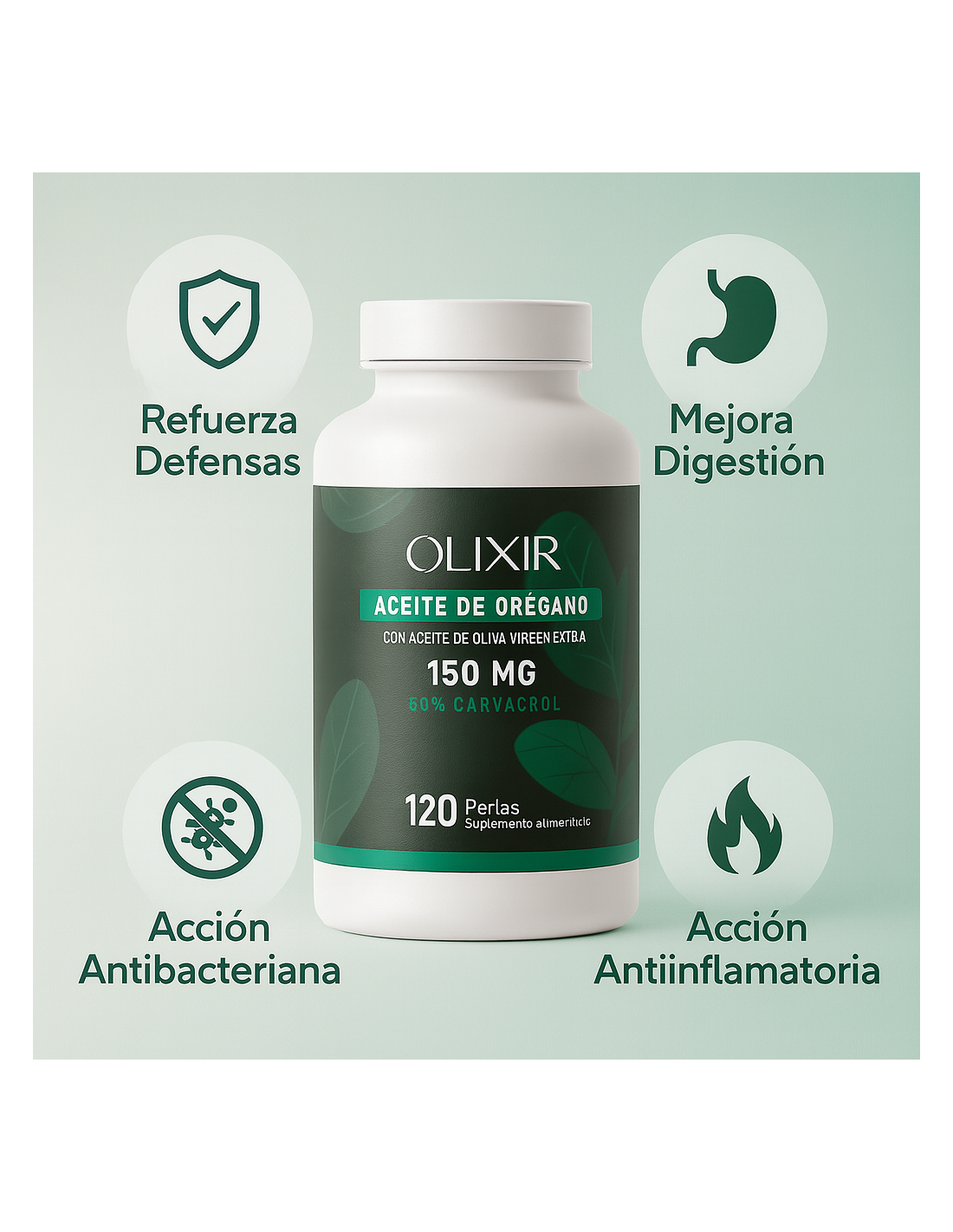 🌿 Olixir Aceite de Orégano 150 mg 50% Carvacrol Natural