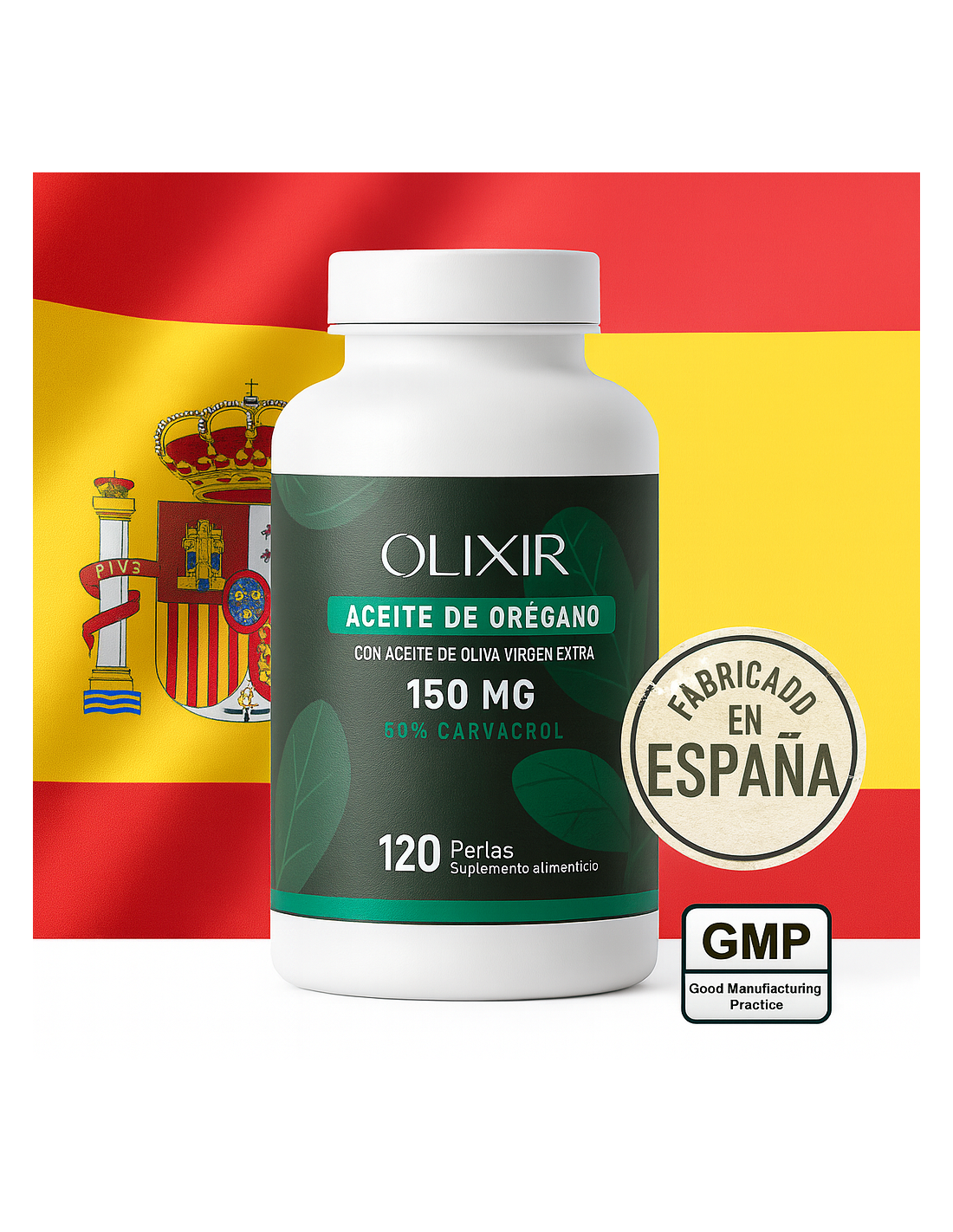 OlixirAceite de orégano natural con 50% carvacrol y aceite de oliva virgen extra. Refuerza defensas, digestión y bienestar. 120 perlas fabricadas en España.